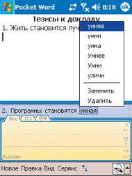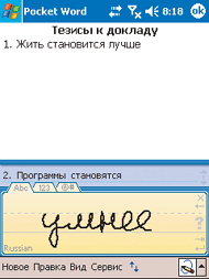 Панель рукописного ввода QPad обеспечивает удобный и быстрый ввод информации в любом приложении КПК путем написания текста от руки обычным способом, без использования каких-либо специальных символов. Программа автоматически распознает рукописный текст, написанный в панели ввода, и позволяет одним щелчком вставить его в любое текстовое поле соответствующего приложения карманного компьютера. Помимо слитного написания программа позволяет писать раздельными рукописными или печатными буквами. В панели ввода предусмотрены отдельные режимы ввода цифр и специальных символов для повышения качества их распознавания. Использование панели делает процесс рукописного ввода текста максимально удобным, а редактирование распознанного текста — оперативным и простым. Наличие специализированной области исправлений позволяет рационально организовать процесс рукописного ввода. Текст вводится непрерывно, без утомляющих интервалов ожидания результатов распознавания.