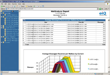 eIQnetworks MailAnalyzer работает с Exchange, Lotus Domino и Sendmail. Инструмент снабжен внушительным набором отчетов о трафике электронной почты, но он проигрывает по сравнению с другими кандидатами, когда дело доходит до создания отчетов о хранении или данных, специфичных для Exchange.