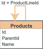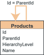 CREATE TABLE Products( Id int identity(1,1), ParentId int, HierarchyLevel tinyint, Name nvarchar(50) )