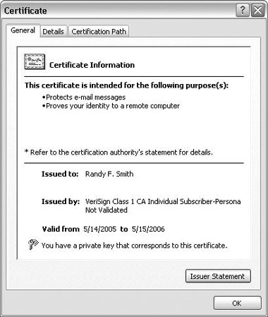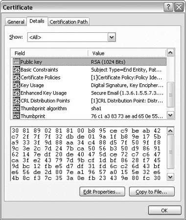Рассмотрим пример. Чтобы Боб мог использовать PKI, он должен получить из CA сертификат, аналогичный показанному на экране 1. Компьютер Боба генерирует пару из открытого и частного ключей, а затем устанавливает соединение с CA. Процесс авторизации описан во врезке «Аутентификация запроса нового сертификата». Например, он выдает идентификационную информацию, в частности об имени, адресе электронной почты, компании и подразделении. Боб передает открытый ключ в CA, но никогда не раскрывает свой секретный ключ, если только CA не предоставляет услуги доверительного хранения/резервного копирования. В результате даже CA не может похитить информацию, защищенную секретным паролем Боба. Затем CA вставляет идентифицирующую информацию и открытый ключ Боба в сертификат, обычно в соответствии со стандартом Public-Key Cryptography Standards (PKCS), созданным лабораторией RSA Laboratories. Более подробную информацию можно найти по адресу http://www.rsasecurity.com/rsalabs/node.asp?id=2124. И наконец, CA дополняет сертификат цифровой сигнатурой, хешируя сертификат, а затем шифрует хеш с использованием собственного частного ключа. В полях сертификата Thumbprint и Thumbprint algorithm (экран 2) можно увидеть зашифрованный хеш сертификата и использованный CA алгоритм хеширования (sha1). Боб может сообщить полученный сертификат другим лицам или опубликовать в таких службах каталога, как Active Directory (AD).