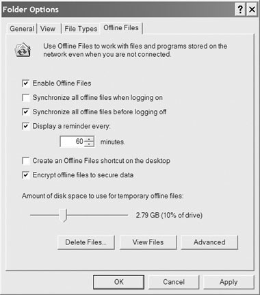 Пользователи XP Pro и более новых версий операционных систем могут зашифровать все локально хранимые файлы, чтобы повысить уровень безопасности. Для этого необходимо, чтобы пользователи активизировали режим Offline Files на клиентской системе, но предварительно шифровать отдельные файлы не требуется. Когда пользователь активизирует шифрование кэша автономных папок на клиентской системе, Windows шифрует кэш с использованием специального цифрового сертификата EFS системы. К сожалению, ключ системы шифрует личные автономные папки всех пользователей клиентского компьютера. Очевидно, данный метод более уязвим, чем схемы шифрования с применением индивидуальных пользовательских ключей. Представители Microsoft утверждают, что в следующих версиях Windows в эту функцию будут внесены изменения.