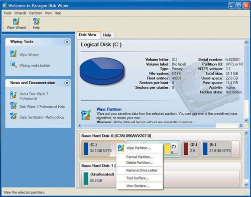 Полное удаление данных с выбранного раздела или всего жесткого диска обеспечивает Paragon Disk Wiper 7.0. Эта программа располагает эффективными алгоритмами, возможностью гибкой настройки, понятным интерфейсом. Данные после удаления с ее помощью невозможно будет восстановить, какие бы технологии ни использовались.