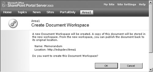 ** Создать Document Workspace на уровне SharePoint Portal Server можно только из домашней страницы. Нельзя создать рабочее пространство документов в подобласти, хотя этот вариант есть в контекстном меню SharePoint Portal Server (экран 3). Это документированное ограничение SharePoint Portal Server подтверждено в Microsoft Product Support Services (PSS).