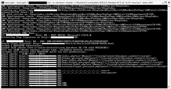 NTOinsight и NTOweb — сравнительно простые в использовании инструменты командной строки. После их установки следует сначала запустить NTOweb без параметров командной строки, чтобы загрузить новейшую версию базы данных Nikto, а затем работать с NTOinsight.