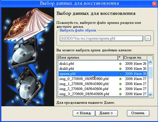 - мастера создания синтетического архива (с новыми заданными свойствами на основе уже существующего архива диска или раздела);