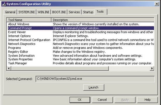 Одним из наиболее удобных обновлений пакета SP2 является вкладка Tools, добавленная в интерфейс службы Msconfig. Как показано на Рисунке 2, вкладка Tools позволяет запускать выбранные средства диагностики непосредственно из службы Msconfig. Основное преимущество вкладки Tools состоит в том, что она основана на технологии XML, поэтому вы легко можете изменять список, добавляя нужные средства.