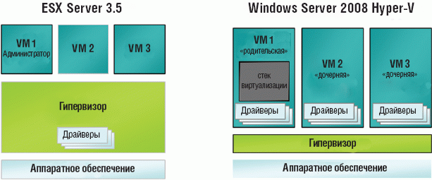Рисунок. Гипервизоры ESX Server 3.5 и Hyper-V