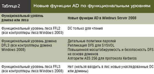 В табл. 1 приведен список важных усовершенствований AD, в том числе и RODC.