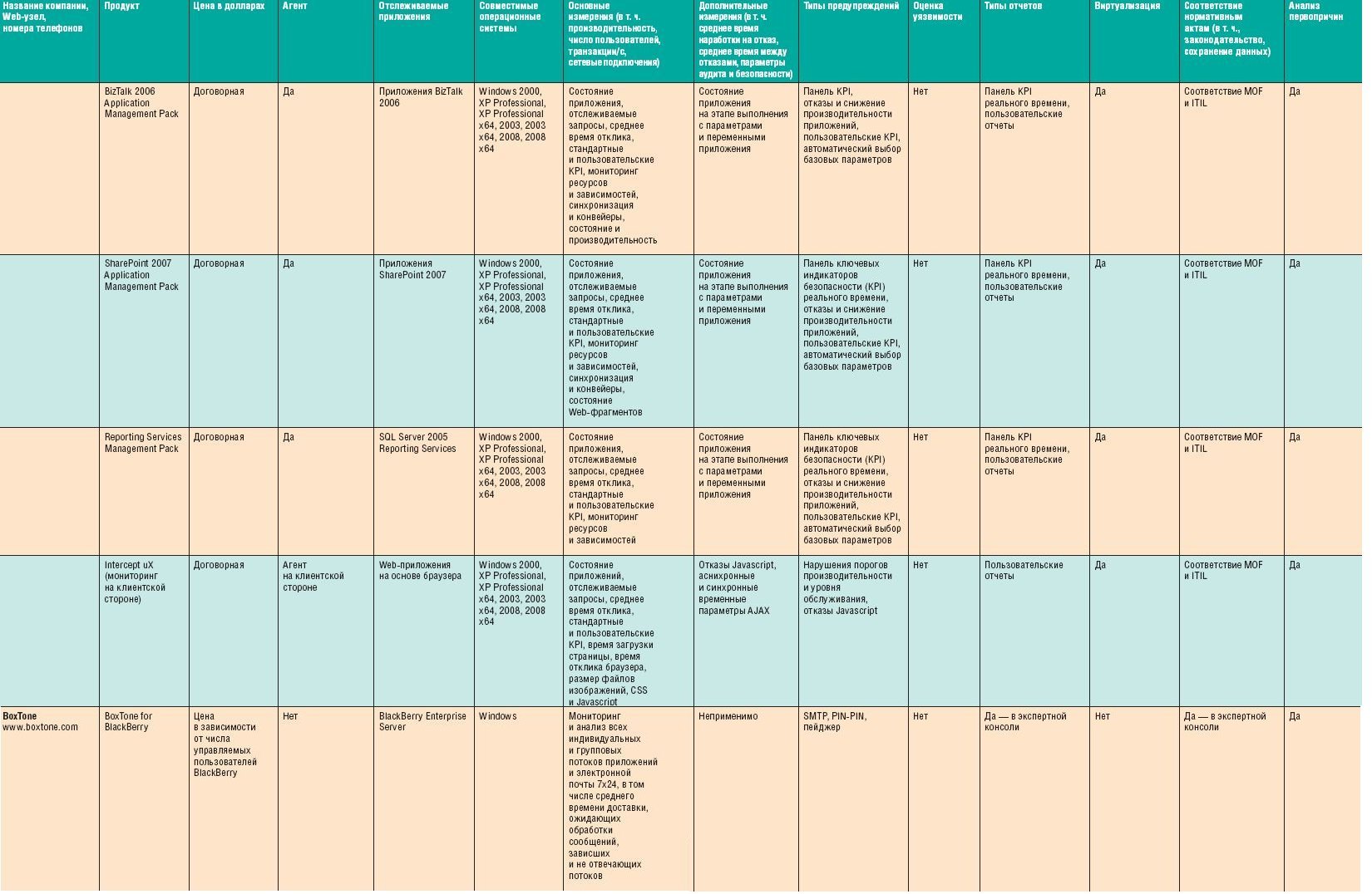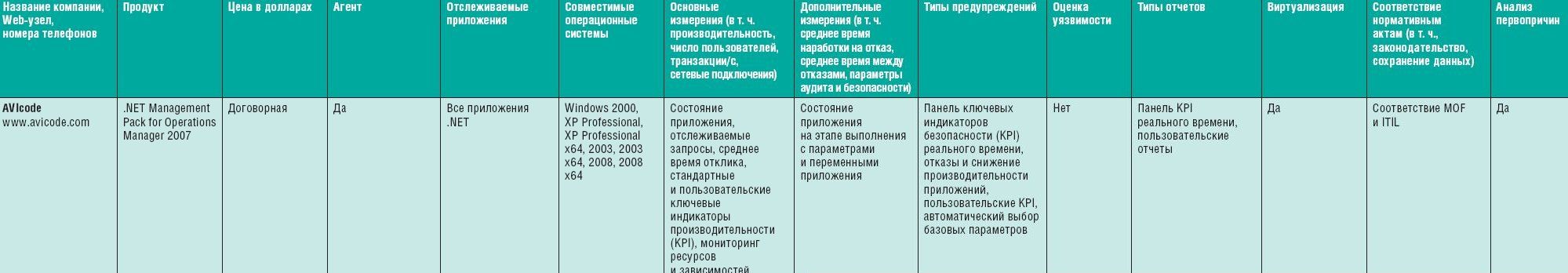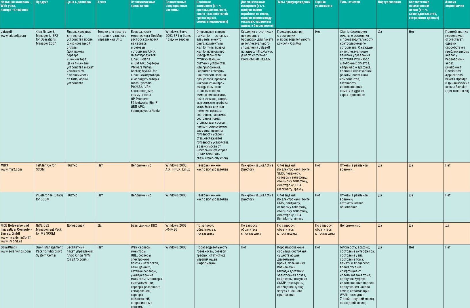 Пакеты управления и надстройки независимых поставщиков позволяют расширять и без того мощные функции мониторинга и подготовки отчетов Ops Manager. Оценивая продукты, в первую очередь определите требуемый диапазон действия, будь то исчерпывающий мониторинг приложений или платформы либо внесение специфических улучшений в функции мониторинга и подготовки отчетов Ops Manager. Затем воспользуйтесь решениями и характеристиками, перечисленными в таблице, в качестве отправной точки для поиска оптимального расширения.