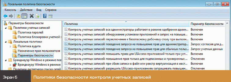 Настройка UAC с помощью политик безопасности
