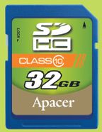 Карта памяти Compact Flash 600 X, соответствующая спецификации CF4.1, выпускается емкостью в 8 и 16 Гбайт. Новинка наделена функцией ECC, которая автоматически исправляет ошибки записи и поврежденные файлы. Еще одна особенность — применение утилиты Global Wear Leveling, позволяющей увеличивать срок службы карты. Новинка обеспечивает скорость записи в 10 Мбит/с и выпускается емкостью в 8, 16 и 32 Гбайт. С учетом того что современные фотокамеры для любителей по многим параметрам вплотную приблизились к профессиональным, скорость записи/чтения флэш-карты является важным параметром. Карта памяти SDHC класса 10 от компании Apacer — одна из самых быстрых на рынке — специально разработана для матриц с разрешением до 12,1 мегапиксела и позволяет делать продолжительные серии фотоснимков, а также записывать видео в формате Full HD.