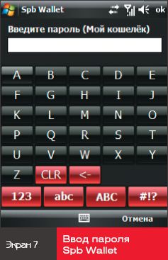 Для входа в кошелек необходимо набрать заданный вами пароль к нему (экран 7).