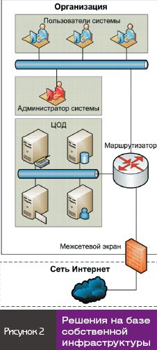 Забегая вперед, скажем, что классическое на сегодня решение, когда службы и приложения установлены на оборудовании собственной инфраструктуры, оправданно только для компаний с высокими требованиями к функциональности и числом сотрудников более 70.