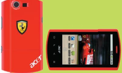 Бесклавиатурный моноблок Liquid E Ferrari на базе Android 2.1 выполнен в эргономичном дизайне. Почти всю переднюю панель его глянцевого красного корпуса занимает большой сенсорный экран высокой четкости (WVGA) диагональю 3,5 дюйма, а на задней панели расположен герб Scuderia Ferrari, сделанный из углеродного волокна. Микрофон аппарата выполнен в виде «воздухозаборника», что придает смартфону вид мощного гоночного автомобиля.