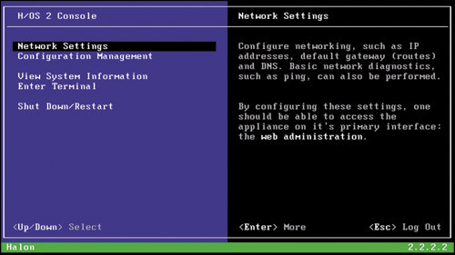 - произвести основные сетевые настройки из консоли виртуальной машины; остальное настраивается из веб-интерфейса администрирования самого Halon-VSP;