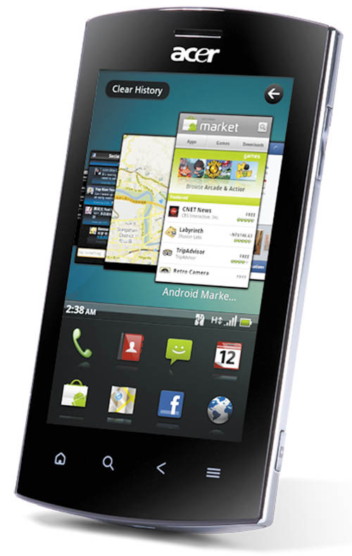 Компания Acer представила новый многофункциональный смартфон Liquid Metal, выполненный в элегантном корпусе с металлическими элементами, работающий под управлением Android 2.2 Froyo, оснащенный мощным процессором Qualcomm MSM7230 с тактовой частотой 800 МГц, а также фирменной оболочкой Acer Breeze.