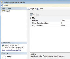 Вы можете использовать SSMS для подмены предварительно заданного расписания запусков задания, как и продолжительности интервала хранения, что показано на экране 4. Для изменения продолжительности периода хранения «истории проверок» перейдите в меню на Management, Policy Management и щелкните правой кнопкой мыши на пункте Properties, а затем измените величину параметра HistoryRetentionInDays.