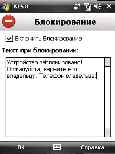 После получения специальной SMS-команды функция «Блокирование» позволяет дистанционно заблокировать доступ к устройству и хранящейся на нем информации. Разблокировать устройство можно только после ввода секретного кода (экран 5).