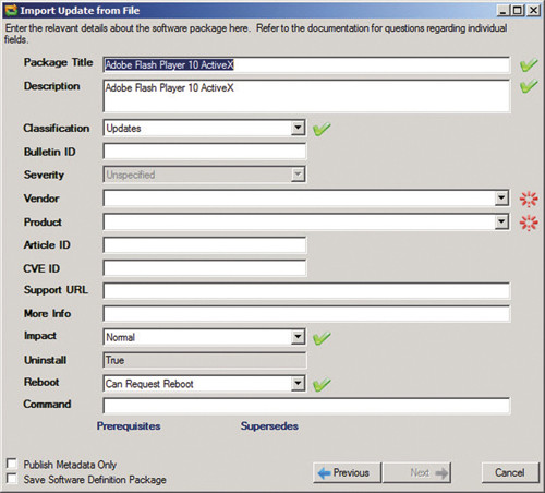 Подготовка локального обновления. Для этого необходимо работать с файлом Windows Installer, так как инструмент Local Update Publisher автоматически строит правила для применения обновлений через WSUS. Если требуется использовать файл exe и если не удается извлечь из него пакет Windows Installer, необходимо изучить основные правила публикации обновлений System Center. Дополнительные сведения об этих правилах можно найти по адресу technet.microsoft.com/en-us/library/bb531004.aspx.