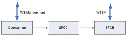 В конечном итоге архитектура выглядит так, как показано на рисунке 3. Проще говоря, при обращении по протоколу WS-Management сервер openwsman обрабатывает полученный запрос, при помощи клиента SFCC обращается к серверу SFCB за данными CIM. Затем эти данные преобразуются к нужному виду и отправляются в ответ. С другой стороны, в этой архитектуре мы имеем возможность обратиться к серверу SFCB самостоятельно, но уже по протоколу WBEM/CLI-XML и получить те же данные.