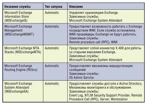 | Таблица 2. Основные службы Exchange Server 2003 |