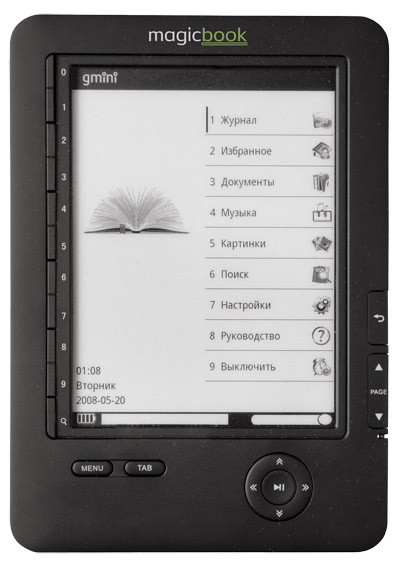 Подобно всем устройствам Gmini MagicBook, модель M61P русифицирована и поддерживает как обычные текстовые, так и специализированные библиотечные форматы (ePUB, FB2 и MOBI) с разбиением на главы, содержанием и обложкой. Имеется функция распаковки архивных ZIP-файлов. Для обеспечения комфорта при чтении устройство позволяет легко настраивать тип и размер шрифта, межстрочный интервал и размер полей, а также менять ориентацию страницы. Мультимедийные возможности MagicBook M61P традиционно представлены встроенным музыкальным проигрывателем, который поддерживает основные аудиоформаты и способен работать автономно или в фоновом режиме во время чтения. Для воспроизведения музыки предусмотрены встроенные динамики и наушники со стандартным разъемом 3,5 мм. Имеется возможность просмотра изображений в популярных графических форматах JPG, GIF, PNG и BMP.