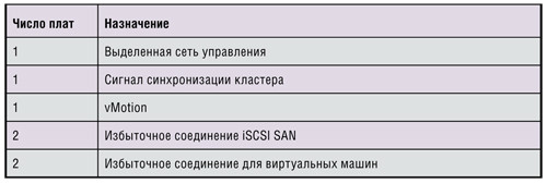 | Таблица 2. Семь сетевых плат на сервере в кластере |