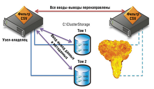 Это именно тот случай, когда необходимо перевести общий том кластера в режим переадресации. Но зато теперь вам не нужно беспокоиться об этом при использовании утилит и средств резервного копирования, которые поддерживают работу с общими томами кластера.