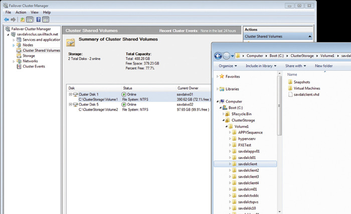Пользоваться технологией Cluster Shared Volume просто. После добавления дискового накопителя к общему тому кластера его разделы появляются в качестве подкаталогов папки \%systemdrive%\