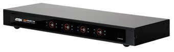 «Сердце» такой системы -- коммутатор видеосигнала, который обеспечивает распределение информации от нескольких источников на разные группы мониторов, переключение контента по заданным схемам и т.д. Такие коммутаторы могут быть оснащены различными интерфейсами, что обеспечивает гибкость выбора решения для конкретного проекта. Например, выпускаются коммутаторы с интерфейсами HDMI, обеспечивающими высококачественную передачу несжатой аудио- и видеоинформации по специальному кабелю. К этой категории продуктов относится коммутатор ATEN VM0404H (см. Рисунок 1). Он содержит матрицу 4x4 HDMI и позволяет подключить, с одной стороны, четыре источника HDMI-сигнала (скажем, плееры HD-DVD, Blu-ray, потоковый плеер, систему спутникового ТВ), а с другой – средства воспроизведения (мониторы, проекты, телевизоры…). Каскадирование таких коммутаторов позволяет поддерживать до 64 источников/получателей видео.