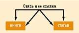 Для иллюстрации возможностей разработчика, обладающего таким арсеналом связей, приведем пример представления связи many (n-ary)-to-many (n-ary) recursive (см. рис. 1). В этом примере одна книга или статья может ссылаться на несколько книг и статей, ссылки на одну книгу или статью могут содержаться в нескольких книгах или статьях. Здесь связь типа «ссылка» заменяет (или объединяет) три не (n-ary)-ные связи: «книги — статьи», «книги — книги», «статьи — статьи»; при этом, за счет такой связи, из объекта «книга» сразу доступны как книги, так и статьи, на которые имеются ссылки в просматриваемой книге.