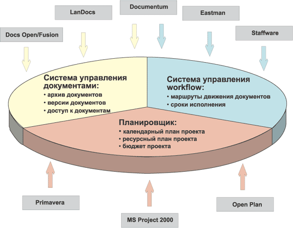 Классы программных компонентов и их возможные представители в реализации архитектуры интегрированного комплекса управления проектами