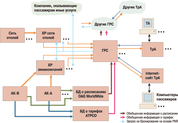 Обобщенное представление бронирования авиаперевозок и связанных с ними услуг на основе PNR (используется часть обозначений, введенных на рис. 1)