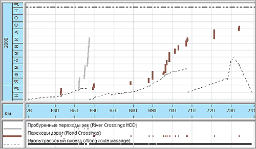 Рис. 2. Линейная диаграмма для некоторых работ строительства Каспийского трубопровода.