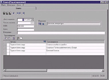 Видно, что ассоциация «Книги» с «Издательством» превратилась на форме в элемент выбора связанного объекта. «Произведения», которые были агрегированы на диаграмме в «Книгу», являются строками. Для получения этой формы не было вручную написано ни одной строчки кода. Единственное, что сделал разработчик, — это переместил, «переразмерил» элементы управления, сменил надписи.