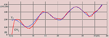 | Рис. 4. Модельные данные (Y) и их прогнозные значения (OY) |