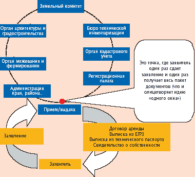 По имеющимся у автора сведениям, уже два с половиной года идет разработка программы управления недвижимостью Красноярска. К началу 2003 года она должна начать работать по технологии «одного окна». Из материалов научно-практического семинара «Создание комплексной системы единого муниципального кадастра и регистрации прав на недвижимость по принципу ?единого окна?» следует, что попытка создания системы «одного окна», к сожалению, пока не сопровождается применением технологий «круглого стола», межведомственного документооборота и управления межведомственными работами.
