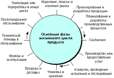 | Жизненный цикл продукции (услуги) в системе качества описывает поведение продукции прежде всего с точки зрения внутреннего менеджмента, начиная от разработки продукции и кончая процессами переработки и утилизации отслужившего свой срок оборудования. |