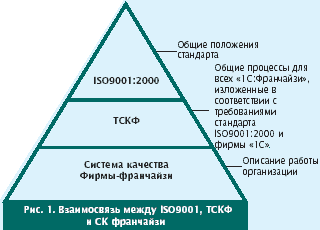 | Рис. 1. Взаимосвязь между ISO9001, ТСКФ и СК франчайзи |