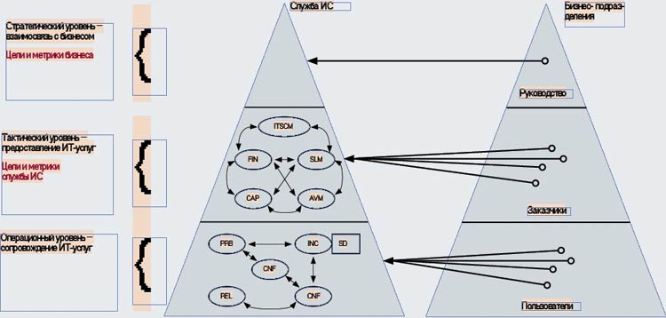 Рис. 2. Взаимосвязь процессов службы ИС в модели ITIL/ITSM