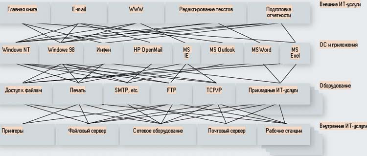 Рис. 5. Соотношение ИТ-услуг и ресурсов службы ИС