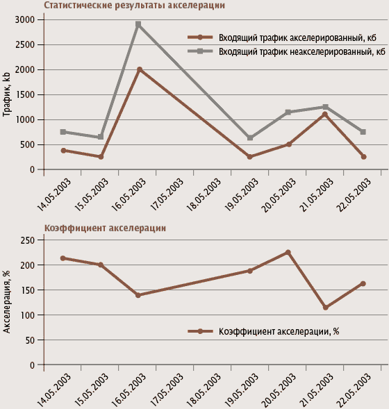 Результаты измерений эффективности технологии акселерации на низкоскоростных каналах