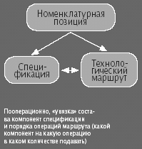 Обычная спецификация. Первый из них — так называемая «обычная» спецификация, которая отражает взгляд на продукт с точки зрения технолога. В этой спецификации учитывается, какие компоненты на какую операцию технологического маршрута в каком количестве (с учетом норм потерь) поступают (см. рис. 1).