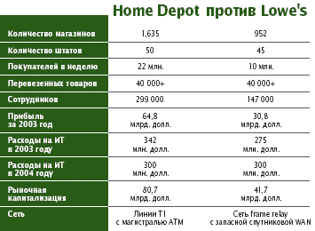 Хотя Home Depot существует уже более 25 лет, сегодня ей приходится переживать немного запоздалый подростковый период. Президент компании Нарделли и директор информационной службы Боб ДеРодес, занявший эту должность в феврале 2002 года, утверждают, что компания «выросла» из своих доморощенных систем, как из коротких штанишек, и что информационные технологии, которые принесли Home Depot ее первые 50 млрд. долл., уже не смогут привести ее к следующим миллиардам. Необходима новая технология, способная поддержать курс на совершенствование работы торговой сети и качества обслуживания (не говоря уже о непрекращающейся конкуренции с Lowe?s, этим призраком, крадущимся по пятам за Home Depot). С этой целью Home Depot в 2002 году объявила о выделении почти миллиарда долларов на капитальный пересмотр и совершенствование своей ИТ-инфраструктуры. Этот шаг — часть полномасштабной модернизации, на которую выделено 7,7 млрд. долл. и которая подразумевает перестройку существующих магазинов и открытие новых. Преобразования включают в себя замену системы кассовых терминалов, которая отслужила уже более десяти лет, а также установку прилавков с системой самоконтроля (завершено в 2003 году); модернизацию локальной сети; создание хранилища данных по управлению сбытом и организации труда (запущено в конце 2002 года); установку программного обеспечения для ценовой оптимизации от ProfitLogic; внедрение бухгалтерских программ от SAP (используются с мая 2004 года); внедрение системы планирования ресурсов предприятия от PeopleSoft (работает с февраля 2004 года); использование двухсторонних беспроводных сканирующих устройств (запущено в апреле 2004 года); а также внедрение других новых программ, разработанных для модернизации систем проверки цен и отслеживания оплаты.