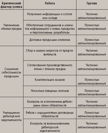 Следующая задача — идентификация работ, наиболее значимых для достижения критических факторов успеха, в соответствии с выбранной стратегией. Работы подразделяются на три группы, по степени автоматизации (табл. 1):