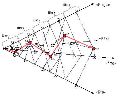У многих ветеранов менеджмента сохранились «романтические» воспоминания о былом минимализме корпоративного управления — когда для постановки и решения задачи достаточно было иметь представление о самой задаче (что нужно сделать) и ее исполнителе (кто будет это делать). Время исполнения в расчет не бралось, поскольку обычно задачу необходимо было решить как можно быстрее. В этих двух измерениях — кто (исполнитель) и что (задача) — удавалось руководить с приемлемой эффективностью и показывать адекватные времени экономические результаты. С тех пор ситуация кардинально изменились: кроме задачи и исполнителя, необходимо стало иметь четкое представление о времени решения задачи (когда) и методике ее решения (как). Современные руководители конкурирующих предприятий осуществляют свою деятельность в «четырехмерном» пространстве: кто (исполнитель), что (задача), когда (временные рамки решения задачи) и как (методика решения задачи).