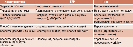 | Отличия в подходах к работе с информацией в ERP- и ECM-системах |