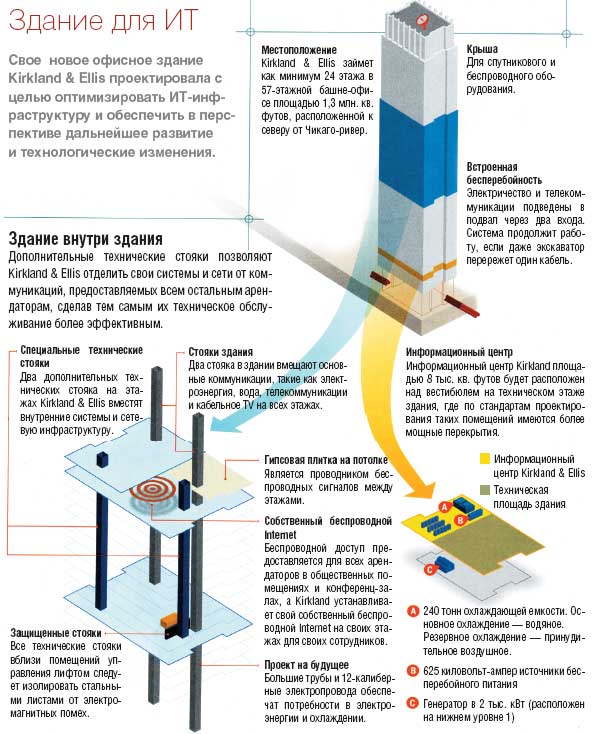 Разумеется, здание — даже этажи, которые Kirkland не занимает, — строятся в соответствии с техническими требованиями Kirkland.