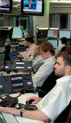 Современный торговый зал трейдеров — это решение, построенное вокруг коммуникаций, открытое пространство, в котором все брокеры должны взаимодействовать, видя друг друга. Плотность информации в торговых залах фантастически высока — количество информационных потоков, приходящихся на каждого трейдера, исчисляется многими десятками. Чего стоит только голосовой трафик, когда на одном телефоне удерживается одновременно десяток линий, по которым трейдер может вести переговоры в процессе торгов и взаимодействовать с коллегами. Трейдер также использует информацию, которая выводится на несколько мониторов на рабочем месте, телевизионные панели с новостными телеканалами и пр.
