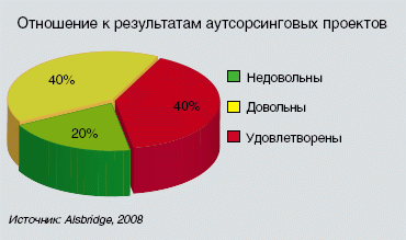 Чтобы быть успешными в условиях мирового кризиса, аутсорсинговые компании должны научиться гибкости. Спрос на их услуги никуда не исчезнет, однако давление со стороны заказчиков, пытающихся добиться более выгодных финансовых условий, существенно возрастет. Традиционно в случае снижения цен поставщик услуг компенсирует это снижением качества сервиса. При том, что проекты, естественно, продолжают не укладываться в установленные бюджетные и временные рамки. Вполне реальным выходом для компаний, пытающихся сохранить качество услуг и при этом сократить издержки, может стать офшоринг. По данным компании Alsbridge, в настоящее время европейские компании втрое чаще заключают договоры аутсорсинга с местными поставщиками, нежели с зарубежными. При этом почти 40% не скрывают удовлетворения результатами внутреннего аутсорсинга, а еще 40% высказываются сдержанно. Тем не менее массовая экономия на ИТ может привести к существенному росту офшоринга.